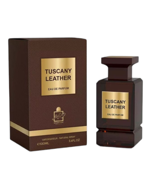 Tuscany Leather de Fragrance World es una fragancia de la familia olfativa Cuero para Hombres y Mujeres. Tuscany Leather se lanzó en 2023. Las Notas de Salida son frambuesa, azafrán y tomillo; las Notas de Corazón son incienso de olíbano (franquincienso) y jazmín; las Notas de Fondo son notas amaderadas, cuero, ámbar y gamuza.